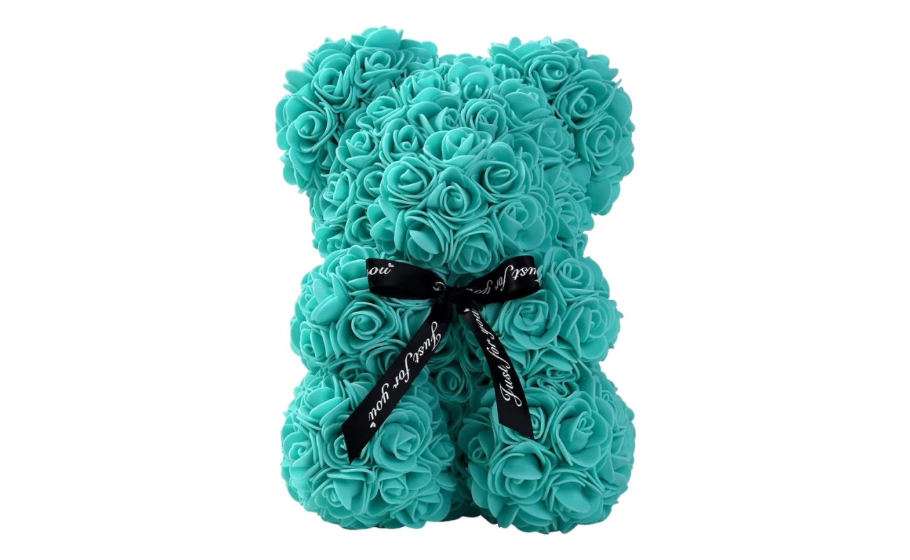 Oso De Rosas Artificiales Celeste Agua De 25cm Aniversario