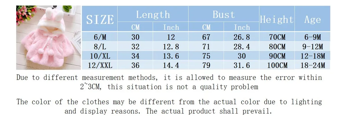 ¡Haz que los paseos en días fríos sean más tiernos y acogedores! Nuestro Abrigo Infantil con Capucha de Conejito es perfecta para bebés y niños pequeños. Confeccionada en suave felpa de alta calidad, esta capa ofrece abrigo y comodidad sin irritar la piel sensible de tu pequeño.
