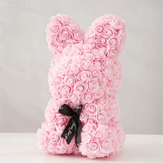 Conejo con Rosas Artificiales de Coma Eva – Un Regalo Encantador y Elegante