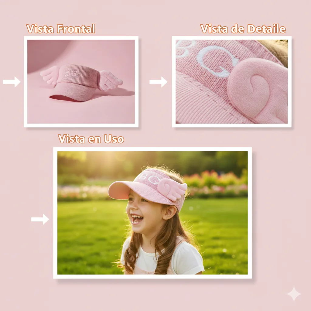 Protege a tu pequeño o pequeña del sol con el accesorio más adorable y funcional de la temporada. Nuestra Visera Gorra Infantil con Alas de Ángel combina moda, comodidad y la protección solar que tanto necesitan. Olvídate de los sombreros aburridos; esta visera, con su diseño tejido de punto y sus suaves alas 3D, hará que salir al aire libre, ir a la playa o pasear por el parque sea una experiencia mágica y segura.
