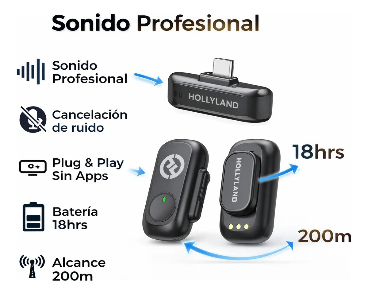 Graba con calidad de estudio y olvídate del ruido. El Hollyland LARK A1 es un micrófono inalámbrico ultracompacto diseñado para creadores de contenido que buscan audio claro, potente y confiable en iPhone. Ideal para YouTube, TikTok, vlogs, podcast y transmisiones en vivo.