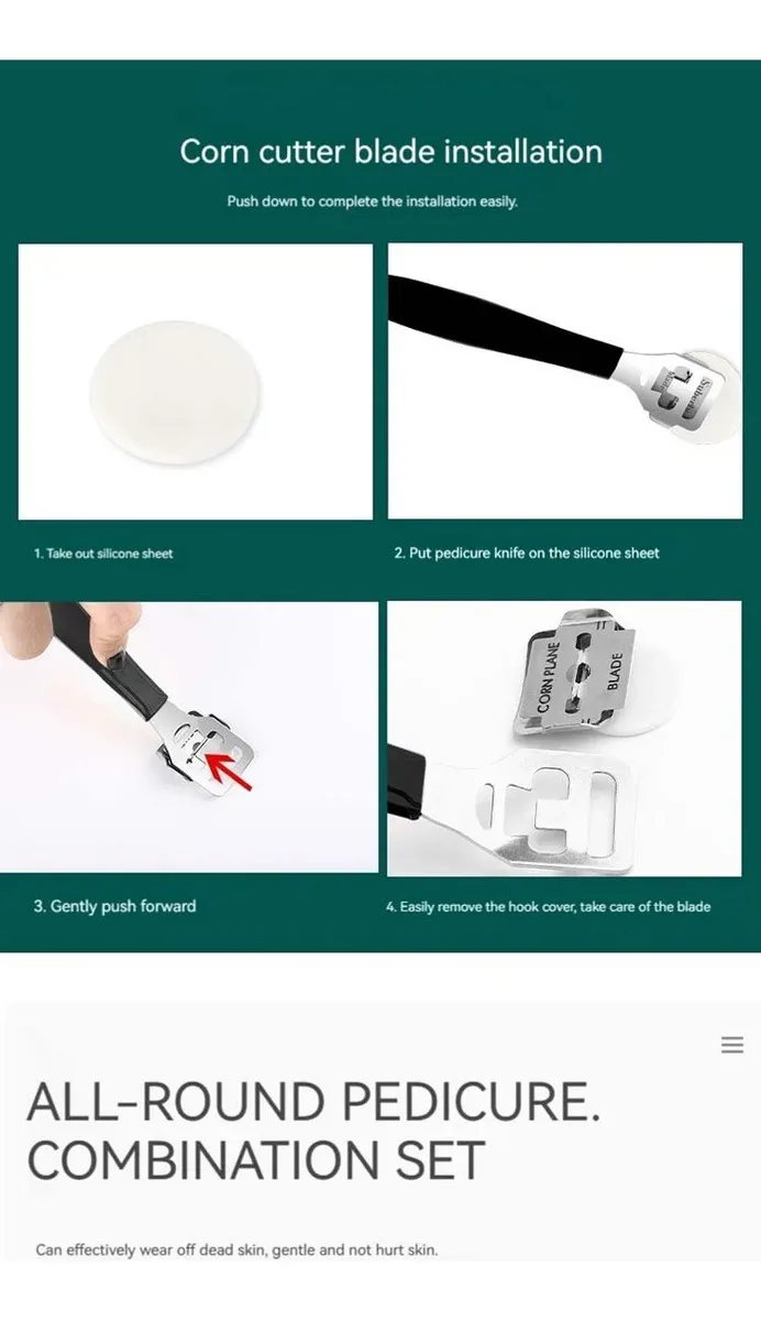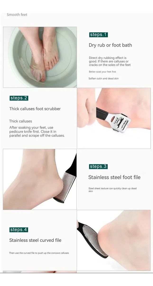 Juego 8 en 1: Incluye tablas de lijado y herramientas de raspado para cubrir todas las etapas del cuidado del pie.