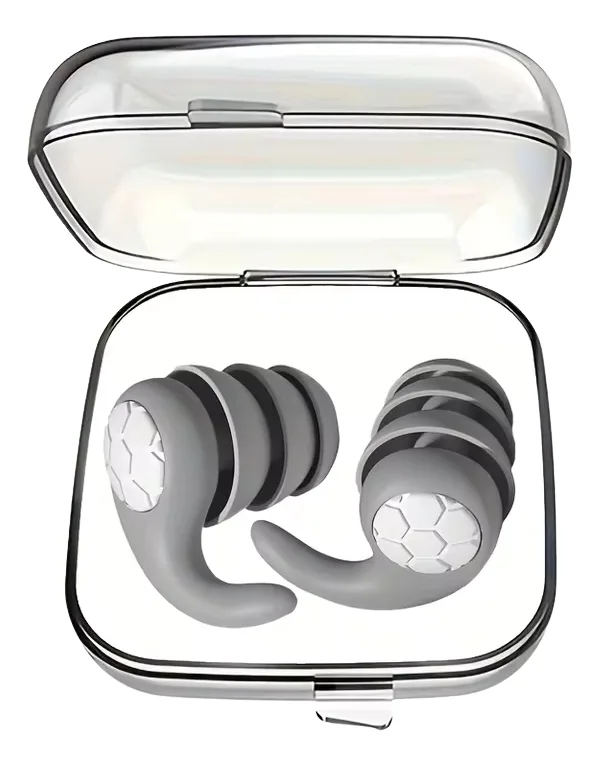 Tapones de oído de silicona gris con certificación CE, diseñados para quienes necesitan reducir ruidos molestos y lograr un descanso más profundo sin bloquear totalmente el sonido ambiente. Ideales para dormir en zonas ruidosas, compartir habitación o mejorar la concentración.